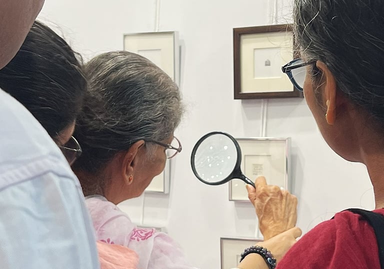 For Bikaner House, he presents special micro-portraits created exclusively for this exhibition, a collection of rare works that carry a treasure of hidden details, waiting to be discovered.