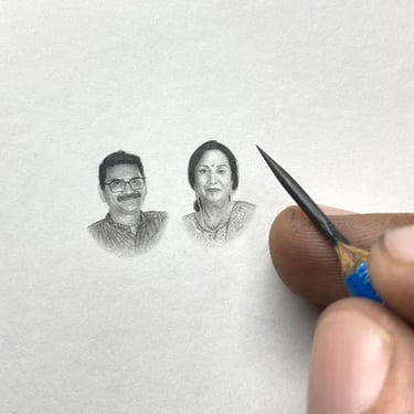 Samay Raina’s Parents Micro portraits, 1.5 cm each