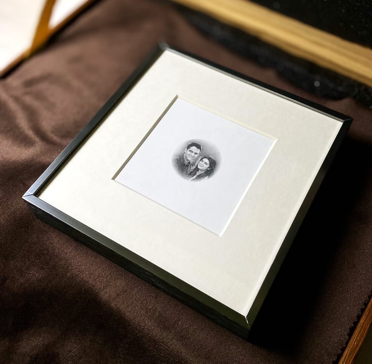 Every micro portrait is drawn by hand, capturing the essence of each moment with precision and depth, ensuring no two are ever the same.